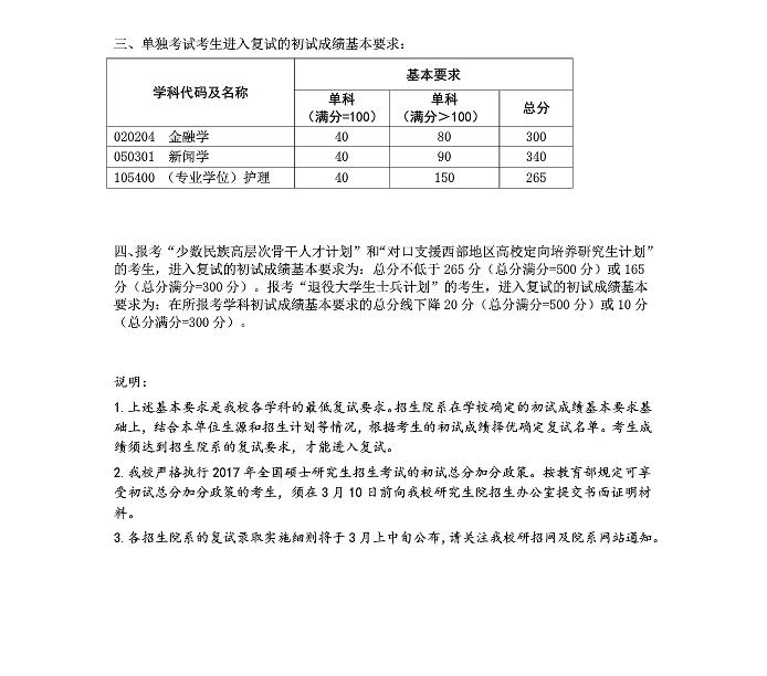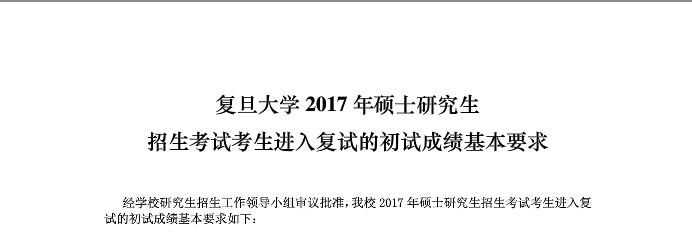复旦大学2017年硕士研究生招生考试考生进入复试的初试成绩基本要求 点击查看