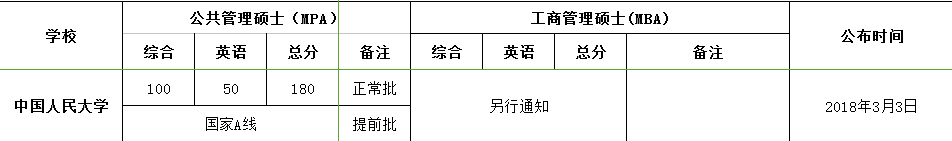 2018年中国人民大学MBA硕士研究生复试分数线院校动态