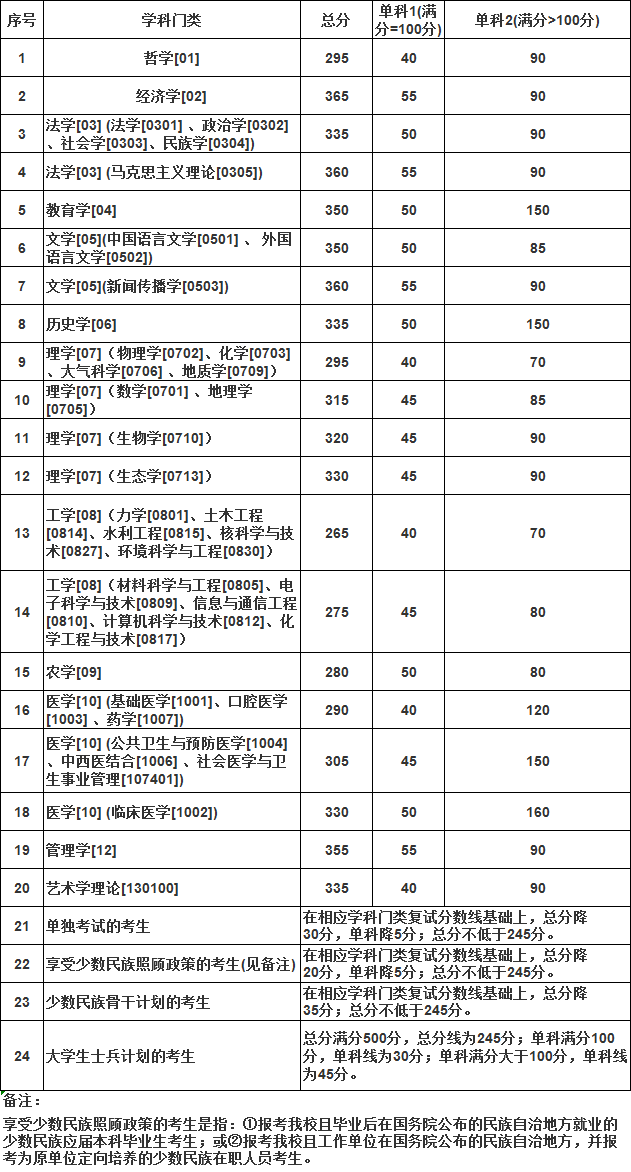 兰州大学2019年硕士研究生招生复试分数线(学术学位)