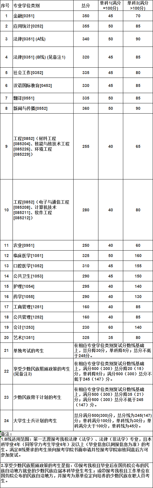 兰州大学2019年硕士研究生招生复试分数线(专业学位)