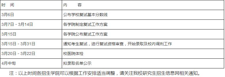 我校复试工作将于2019年3月15日开始,具体时间由各学院确定,各学院复试细则于3月15日左右陆续公布,请考生密切关注我校研究生招生信息网的相关信息。各学院复试大纲可在我校研究生招生信息网选择“资料下载”栏目,进行下载。