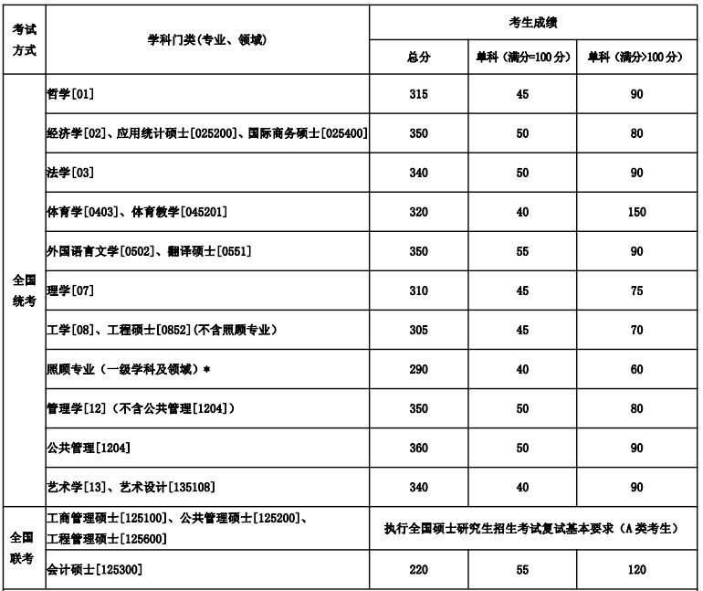 1、统考生中工作单位在国务院公布的民族区域自治地方,即 5 个自治区、30 个自治州、119 个自治县(旗),并报考为原单位定向就业的少数民族在职人员考生,可享受少数民族照顾政策,即在学校初试合格资格线基础上总分降 10 分,单科降 5 分。2、各院(系)可在满足学校初试合格资格线的基础上,根据本院(系)生源和招生规模的实际情况,确定本院(系)各学科(专业领域)的复试线。3、*照顾专业(一级学科及领域):力学[0801]、 冶金工程[0806]、 动力工程及工程热物理[0807]、 地质资源与地质工程[0818]、矿业工程[0819]、冶金工程[085205]、动力工程[085206]、矿业工程[085218]、安全工程[085224]。4、单独考试考生进入复试的初试成绩总分不低于 270 分,单科不低于 50 分。5、退役大学生士兵计划全国统考考生执行学校初试合格资格线基础上总分降 10 分,单科降 5 分;管理类联考考生执行总分不低于 170 分,外国语不低于 42 分,管理类综合不低于 84 分。6、少数民族高层次骨干人才计划、对口支援计划等专项计划考生参加复试的初试成绩基本要求另行公