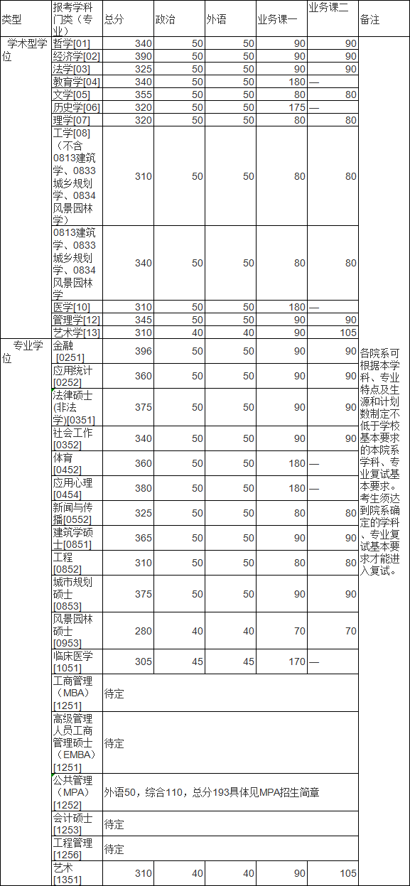 一、学校复试分数基本要求