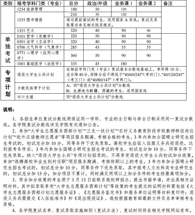中山大学2019年硕士研究生招生考试复试基本分数线院校动态