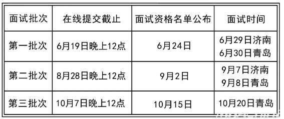 2019年5月21日-2019年10月7日晚上12点(根据报名先后安排面试批次)